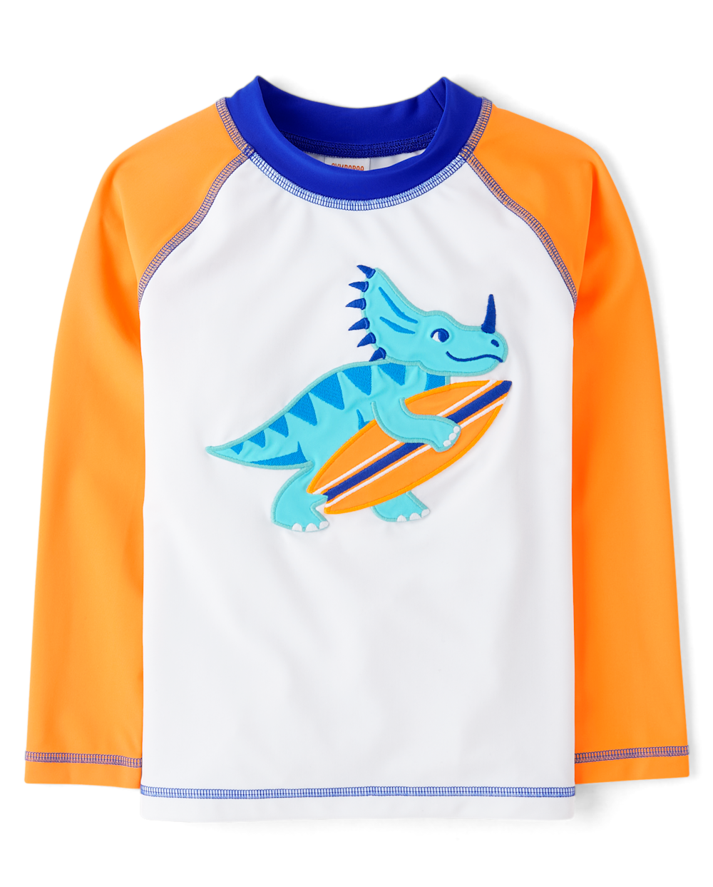 For boys, Carter's always has a very good range of kid-friendly styles of swim trunks, and their rash guards are available in long or short sleeves, allowing plenty of choice if you have concerns about sun exposure.